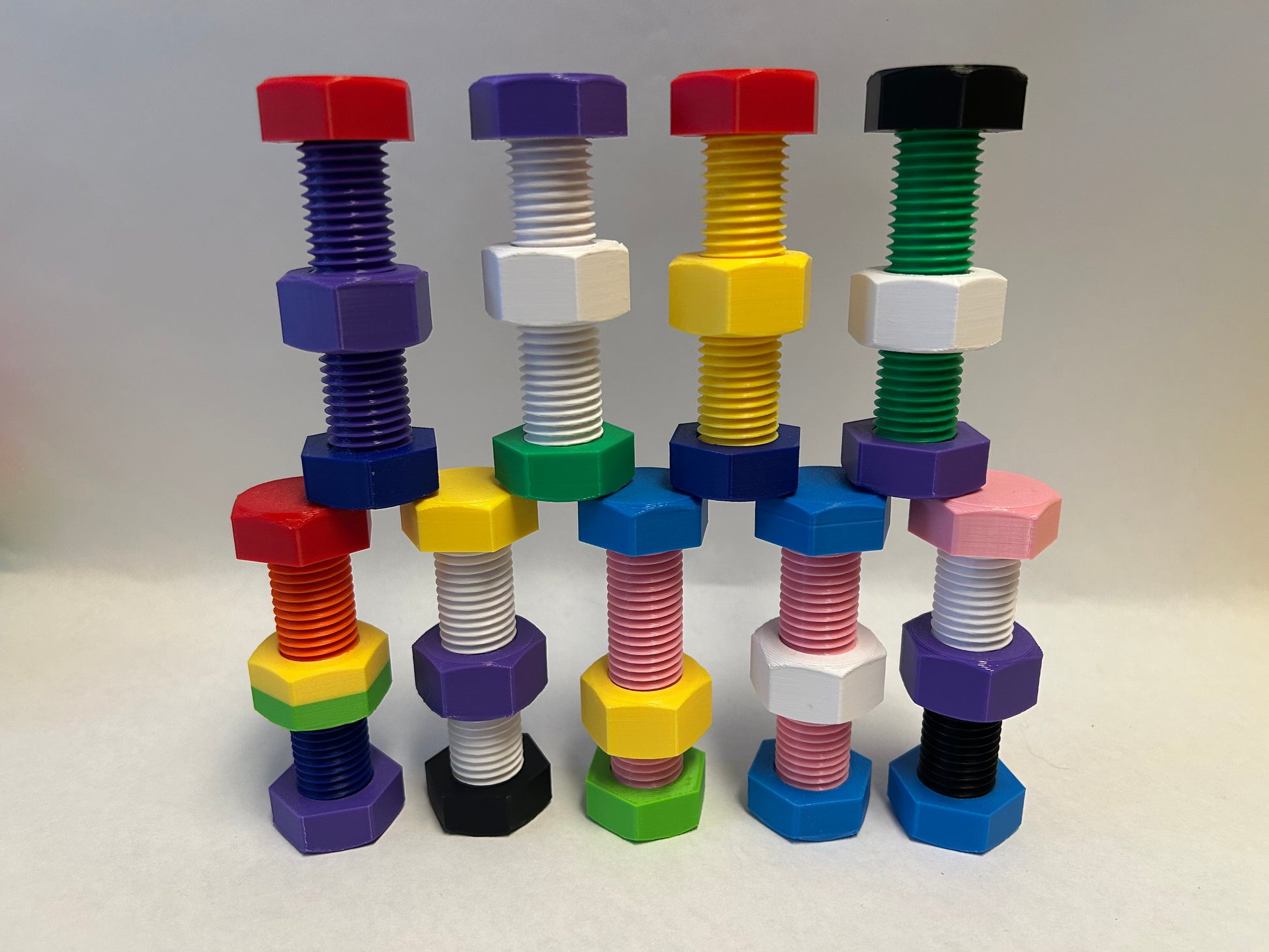 Just like our Nut & Bolts fidgets, these feature a threaded rod with one hex nut and two cap nuts. Unlike those, these are colored in the different flavors that make up our community. Trans, gay, non-binary, asexual; we've got quite a wide selection available to fit most, if not, we've also got the tried and true RAINBOW! We are proud to announce that, for the month of June, 10% of the profits from the sale of these toys will be donated to the Stonewall Hotel!